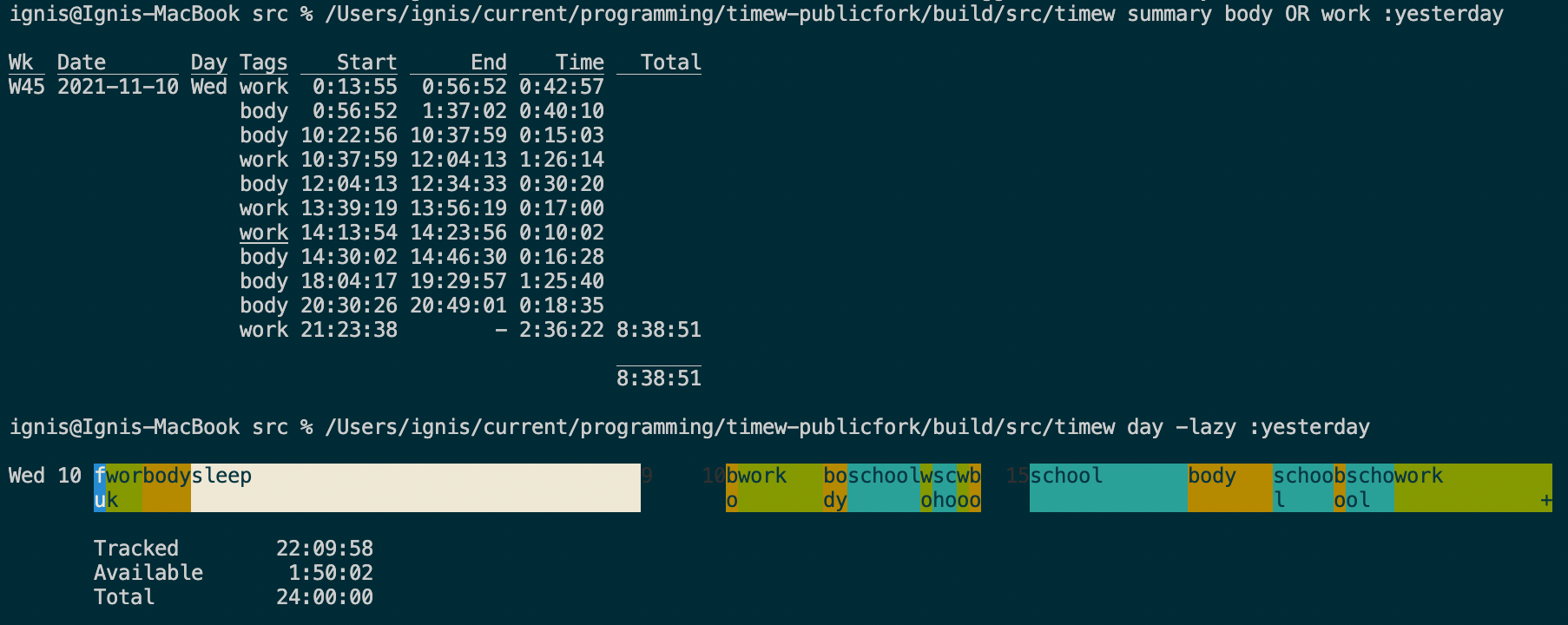 timew dayas well, which is great. Several problems::or, so users may still use "OR" as a tag. Also for consistency. I need help with this since I'm not sure how to access the hints, or how to add a new hint. I think the-operator is good for negation, though it might cause problems if people try to create tags that start with-.timew summary lazy AND school OR workfor example, but that would requirefilter._tagsto be a vector instead to preserve ordering, which seems like a big change, so that's not in this commit.modify.t: timew modify should handle moving start times within an exclusion.(which states that you cannot overlap intervals) andstop.t: Add one interval that encloses an exclusion with day change(which gets a SIGABRT). Not sure how to solve this.Original comment on issue